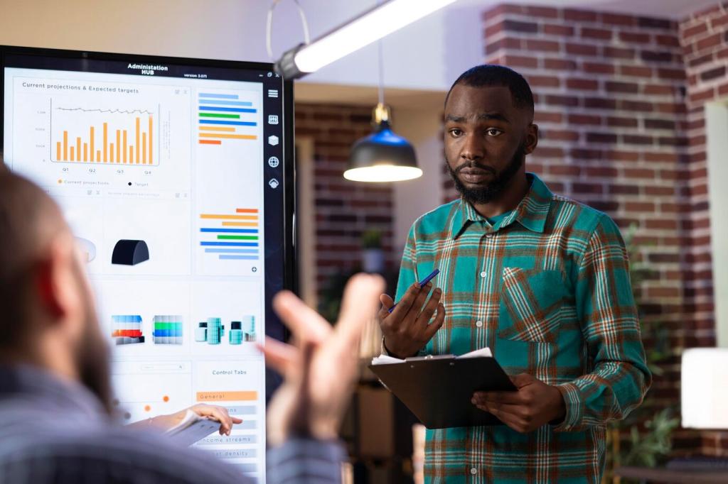 Adopt two‑week sprints for planning enhancements, with demos and retros that highlight learning. A visible backlog invites collaboration and transparency. Innovation compounds when improvements are steady and socialized. Want an agile board template tailored to FP&A workflows? Subscribe and we’ll send a ready‑to‑use board.